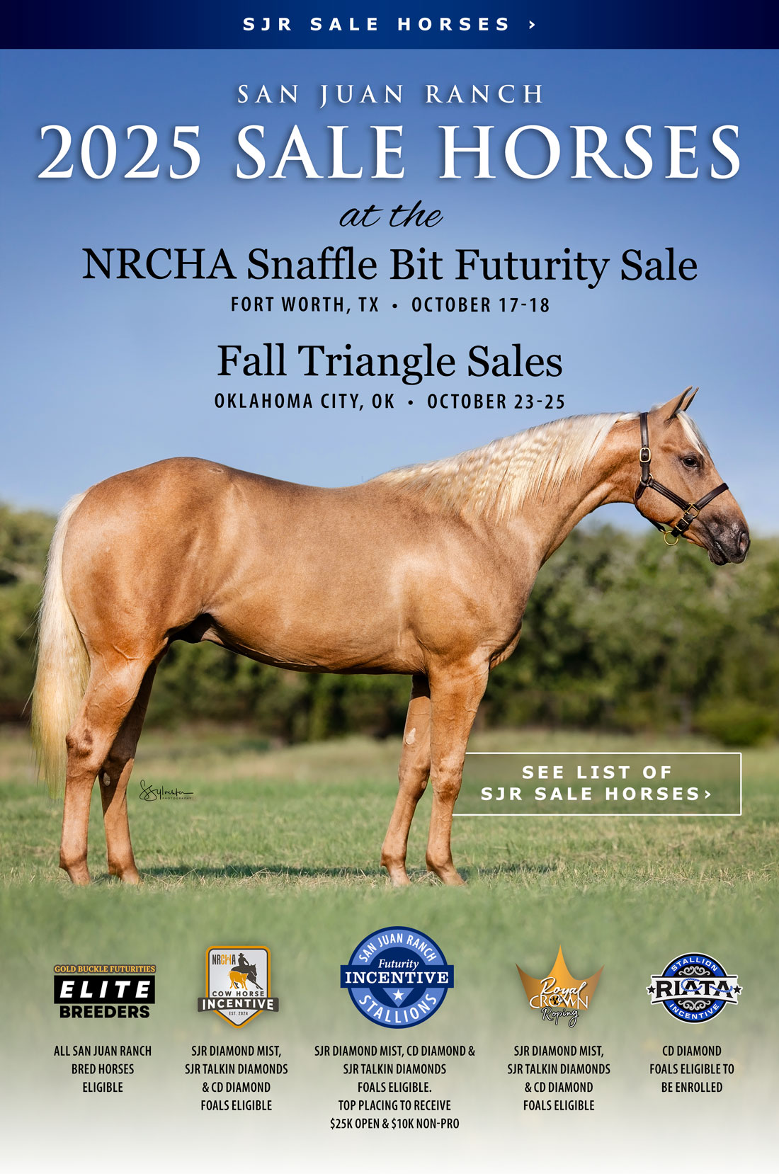 - All San Juan Ranch-Bred horses are eligible for the Gold Buckle Futurities Elite Breeders Program