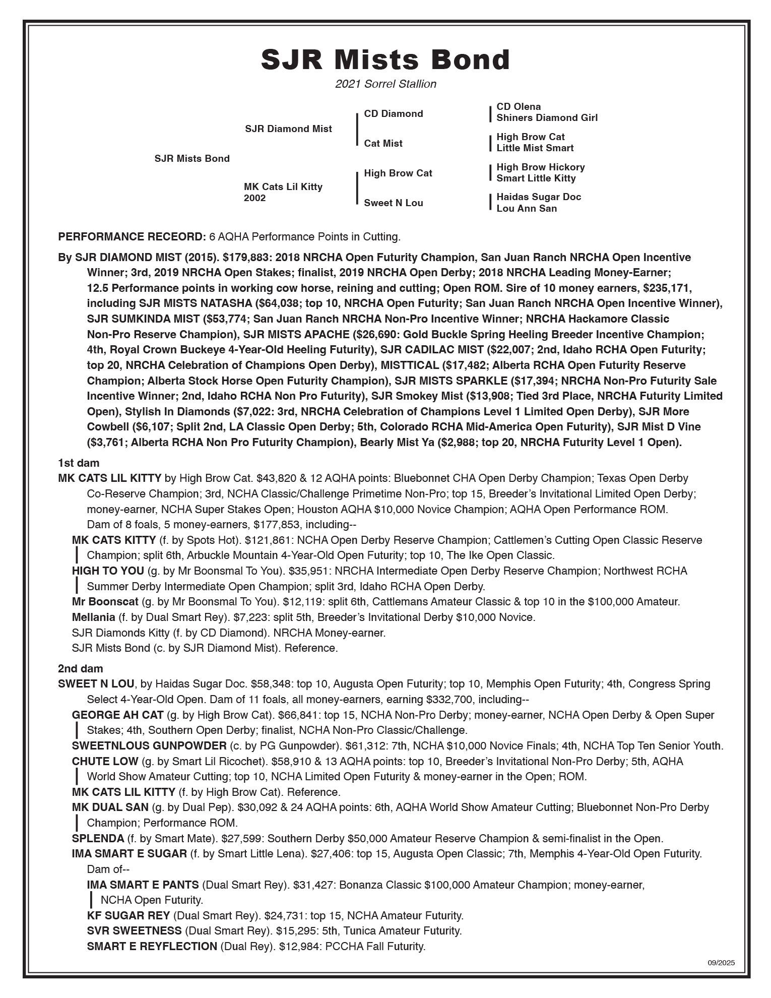 SJR DIAMOND MIST YEARLINGS